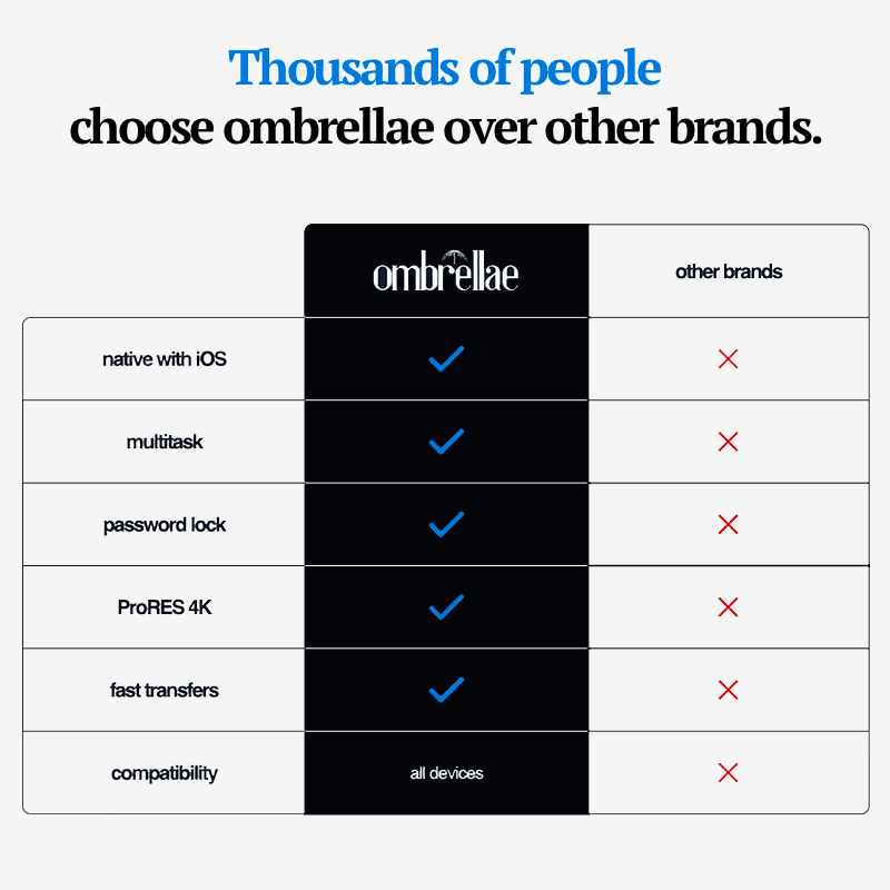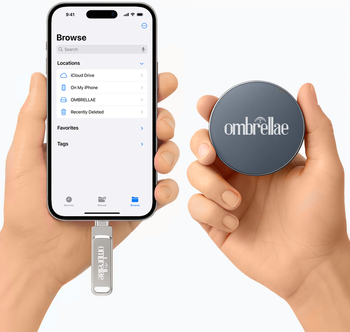 Seamlessly compatible with iPhone, iPad, Android, Mac, Windows, and more. Ombrellae is your universal storage solution, ready to plug and play across all your devices.