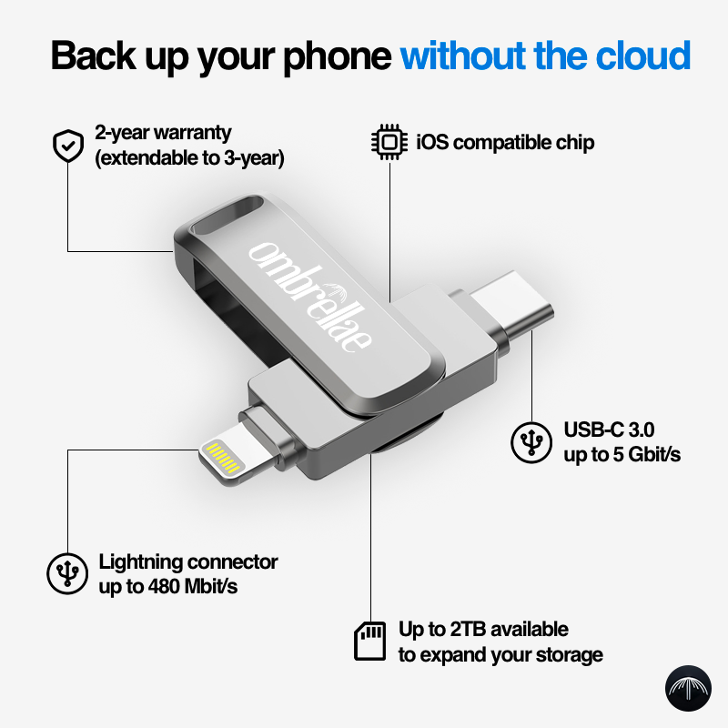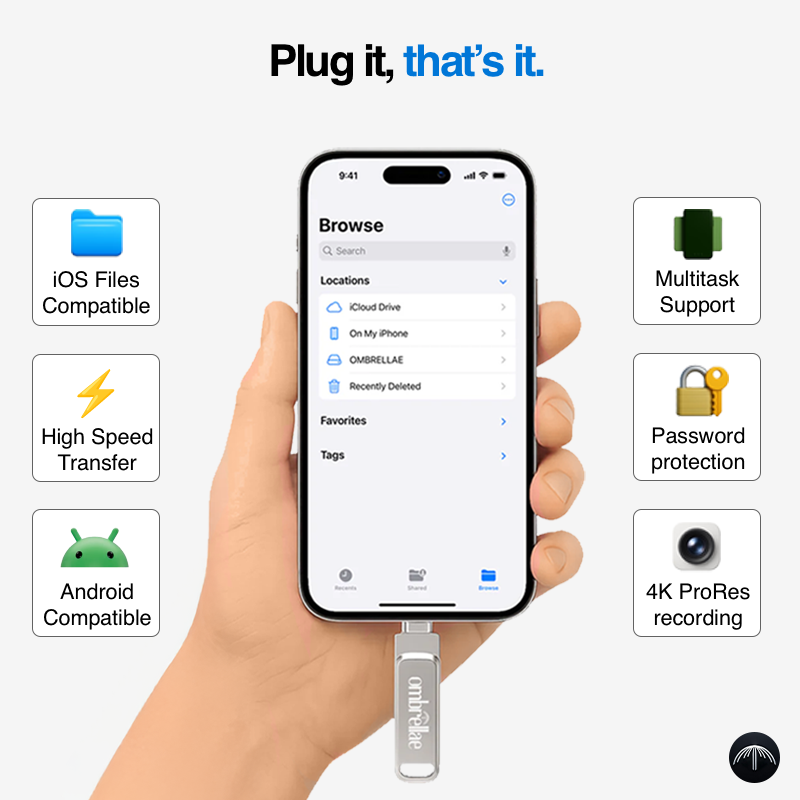 Ombrellae's storage are compatible with all existing devices and operating systems. If you are using an iPhone or iPad, you need at least iOS 13 version for Files app to support our products.