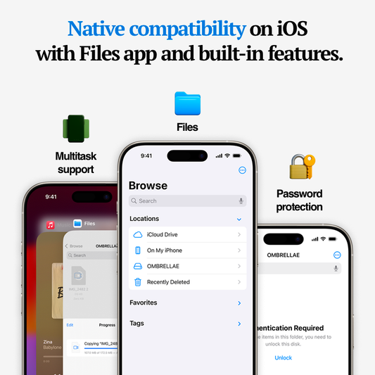 No shady app. No learning curve. Ombrellae connects instantly with your iPhone's native Files app, like it was always meant to be there.